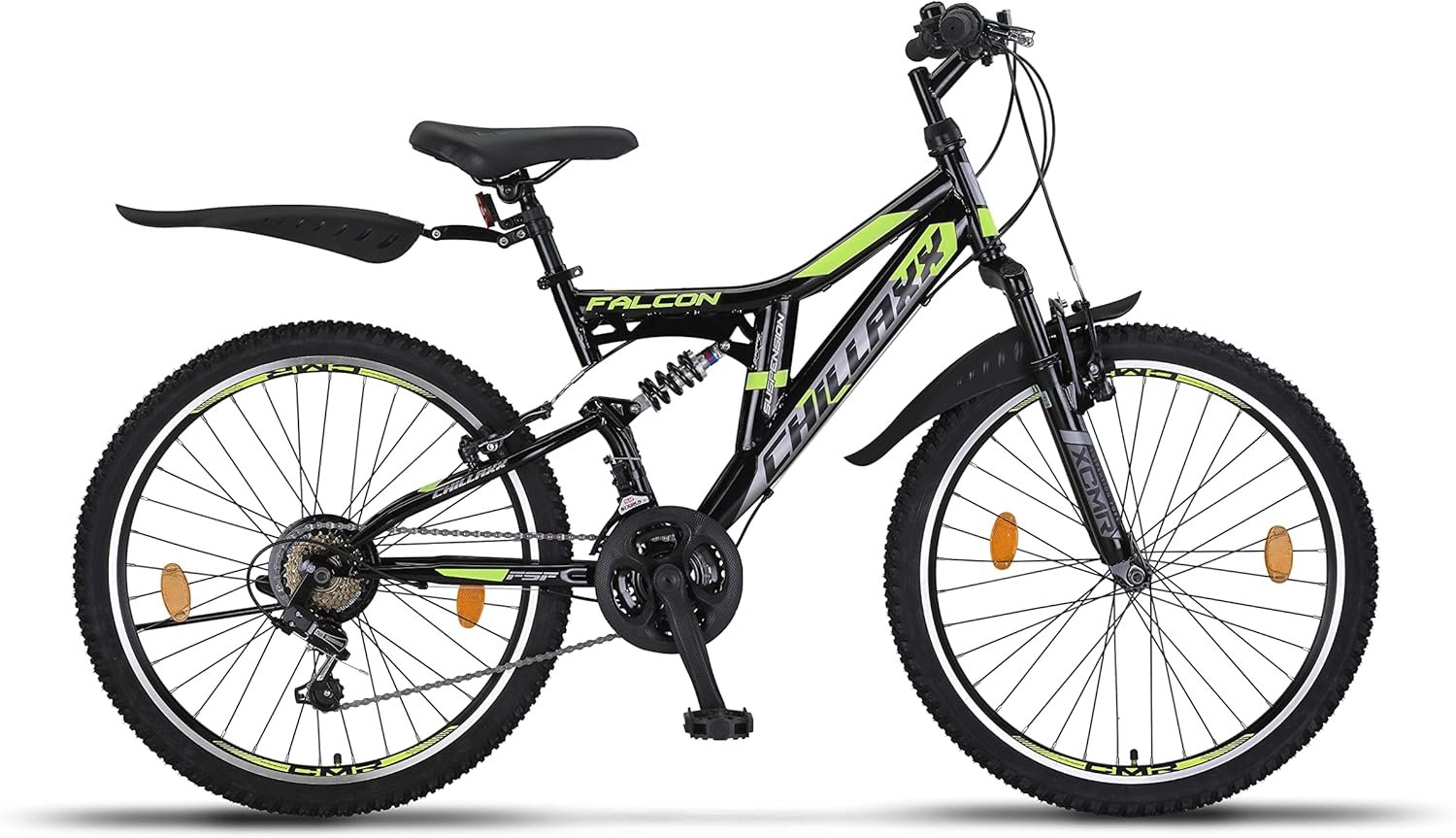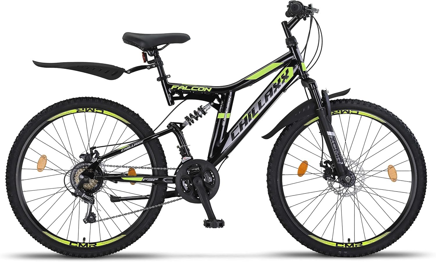 Chillaxx Bike Falcon Premium Mountainbike in 24.26.27.5 und 29 Zoll – Fahrrad für Jungen. Mädchen. Damen und Herren – Scheibenbremse- 21 Gang-Schaltung – Vollfederung