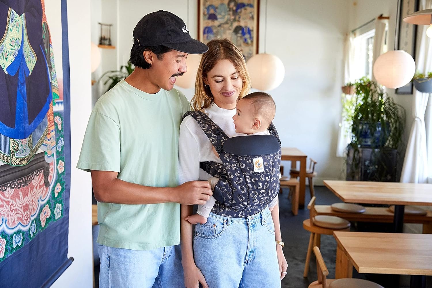 - ERGONOMISCHE BABYTRAGE – 4 Tragepositionen: Bauch-. Hüft-. Rücken- und Fronttrageweise in Blickrichtung nach vorne. Die größenverstellbare Stegbreite unterstützt ab Geburt bis zum Kleinkind (3.2-20.4 kg) die natürliche. ergonomische Anhock-Spreiz-Haltung (M-Position)