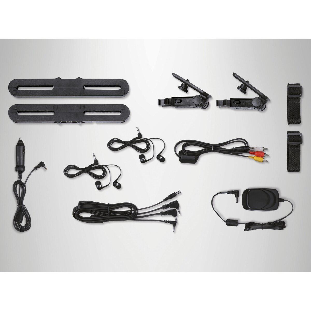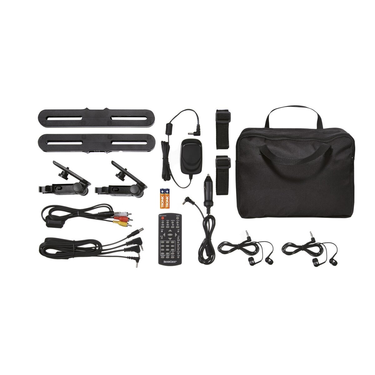 - Inkl. 2 Kopfstützenhalterungen und 2 Stereo-Ohrhörern